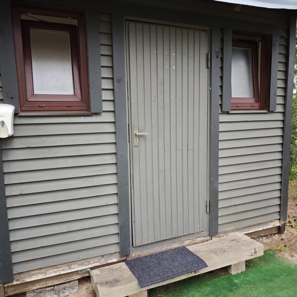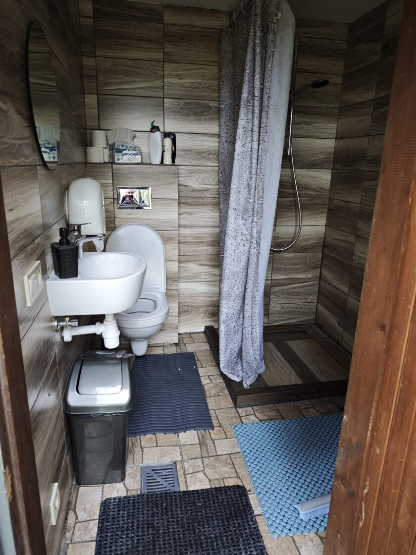 atsevišķa mājiņa ar dušu un tualeti